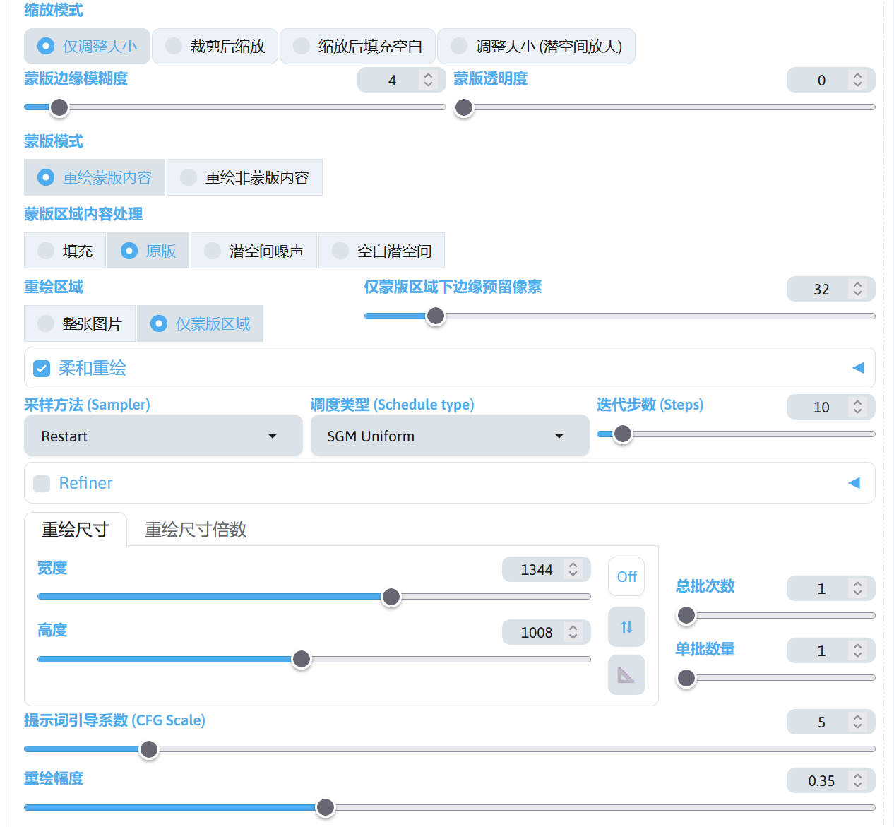 | Mask Feathering | 设置蒙版羽化,使重绘部分和非重绘部分的融合更融洽。 |